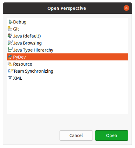 Follow the prompts and install PyDev. When complete it will ask to restart. Once Eclipse is re-opened we need to switch to the new PyDev perspective. To do that, click the “Perspectives” button on the toolbar and then select “PyDev” to open it.