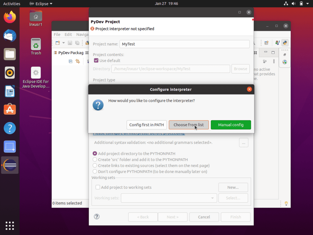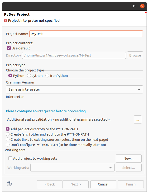 And now you can finish any final selections, click finish, and finally you have a nice, clean, working environment.