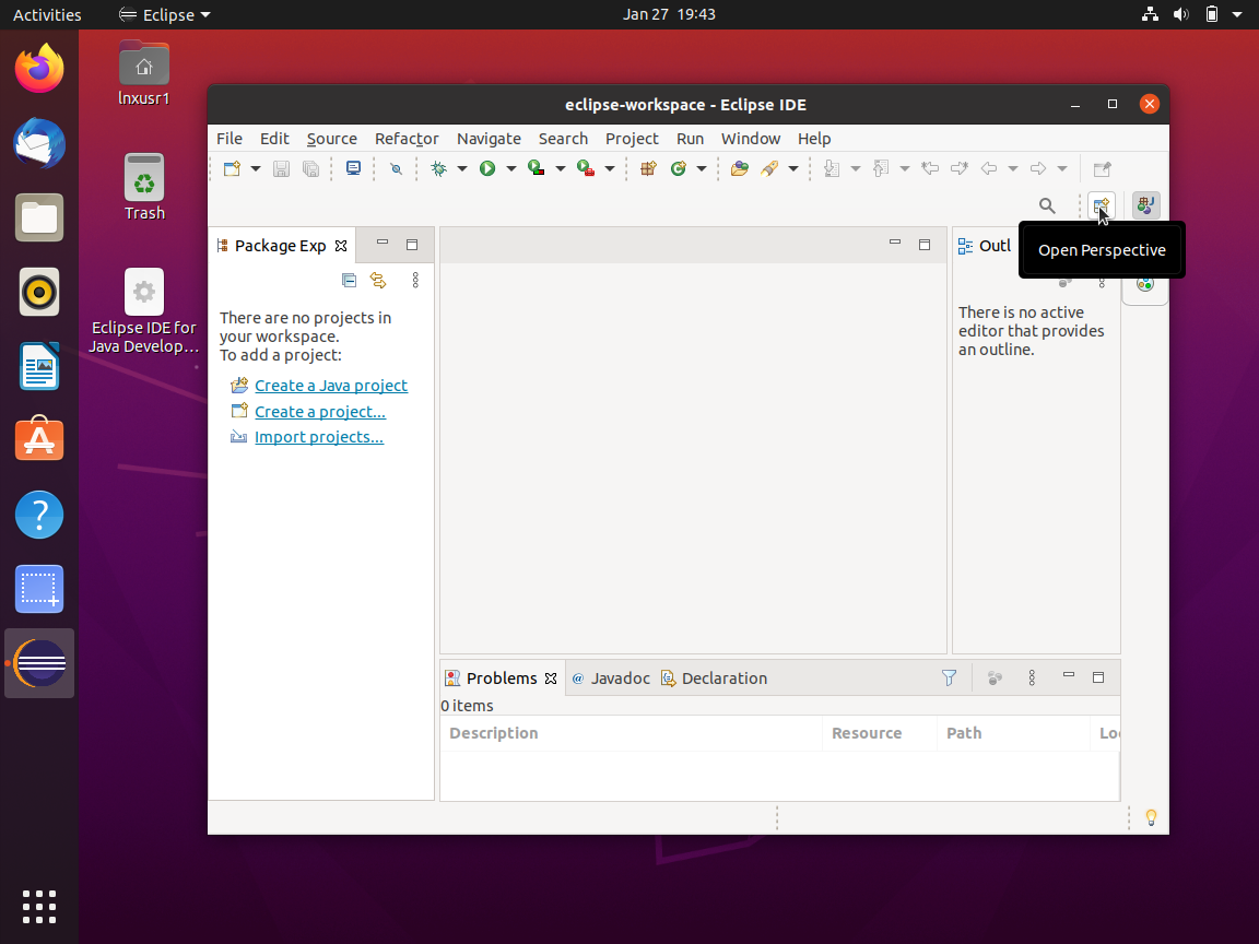 Don’t worry that it asks for a perspective that you don’t recognize. If there isn’t one that suites your fancy then just go with the default “Eclipse IDE for Java Developers” environment. We’ll install “PyDev” next which is what we’ll use for developing Karen.